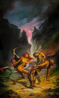 Breach is a series of hardcore tactics game by Omnitrend Software. Publisher Mindraft brought artist Bruce Eagle on for the cover art, who is no stranger to borrowing from Boris Vallejo. His alien seems quite original to me, but the poor space man it shoots down holds a quite familiar pose.